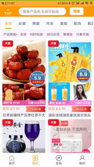 5.九块九包邮专区,所有的商品价格都是九块九,白菜价购买商品;