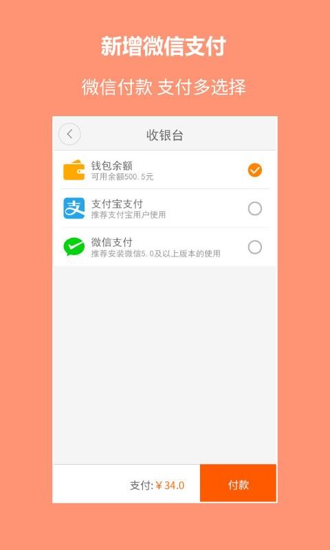可以使用支付宝、微信或者钱包余额进行付款,付款方式多样;