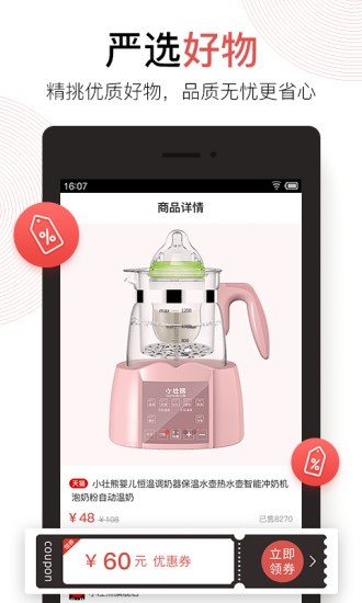2、海量优惠:海量优惠好券,购物前先搜券,大额优惠券随领随用