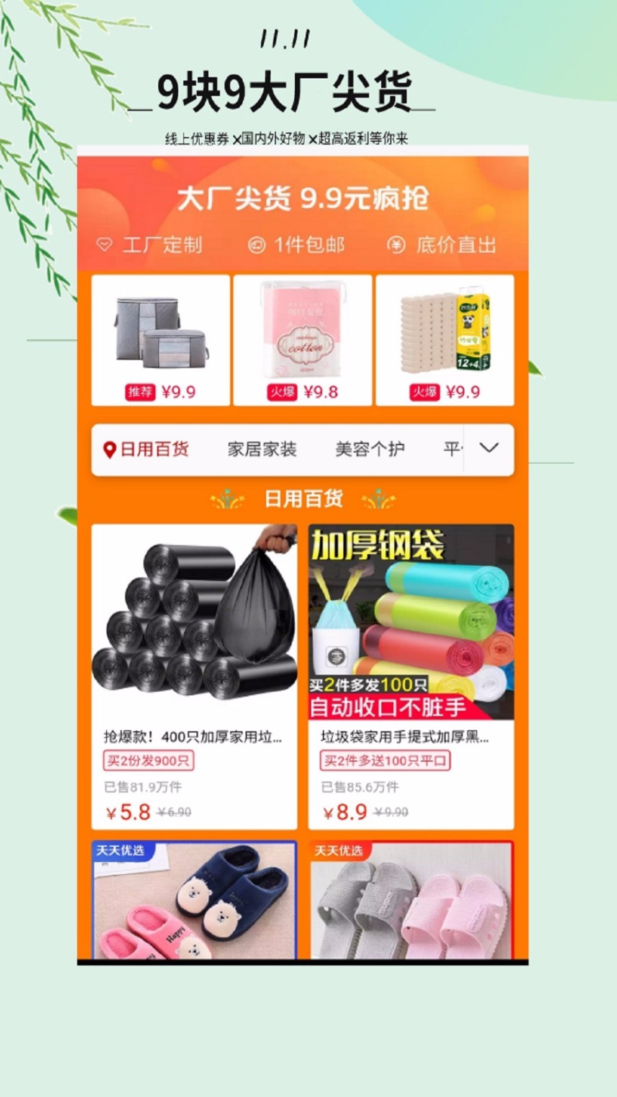 优惠券返利购app是每个人都在用的划算购物app,能够拥有很多免费优惠券供你领取,如果是新手朋友还能够得到新手特享福利,让你花小量的钱用也可以选择自己心爱商品;优惠券返利购服务平台为你优选了大量好商品,二十四小时限时抢购主题活动不间断,购买商品时你也能够根据淘宝优惠卷迅速抵押现金,折扣支付选购。
