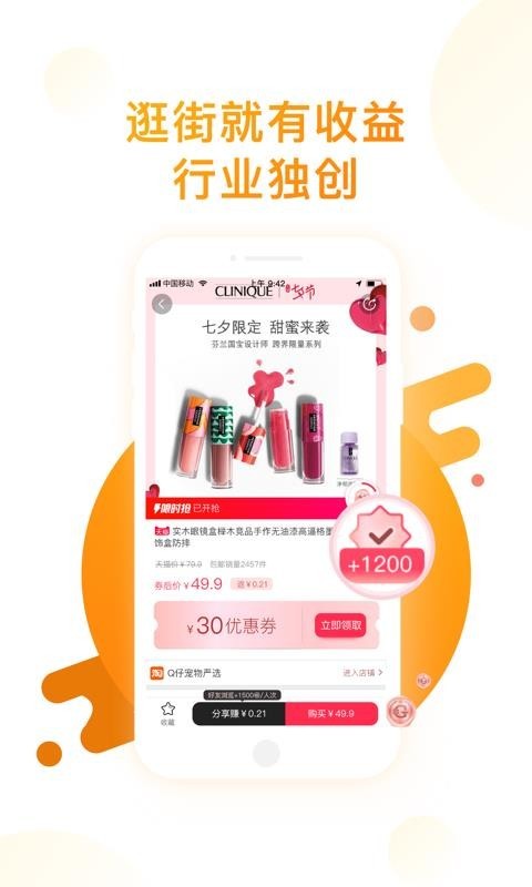 省钱赚钱并进,购物的时候可以用券省钱、分享和返利与邀请的时候可以赚钱;