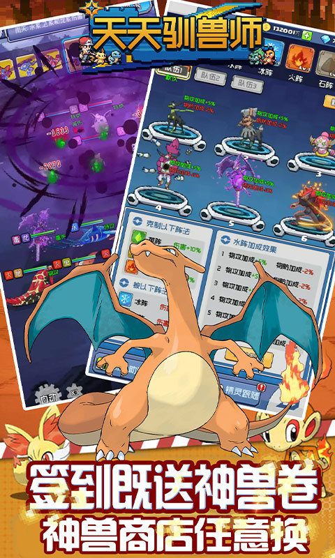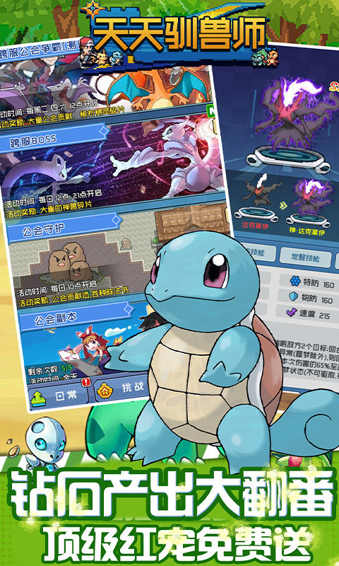 天天驯兽师最新版是一款策略战斗类的手机游戏,这款游戏采用的是回合制的战斗方式,在游戏中,玩家们可以爱收集各种各样的宝可梦,并且玩家们也可以对它们进行训练,让它们能够获得更强的属性,去提高自己的战力,感兴趣的玩家们快下载天天驯兽师最新版体验吧!