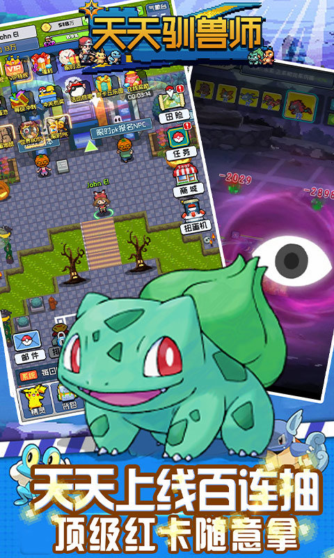 1、经典口袋IP改编的像素风手游,游戏遵从原著世界观;