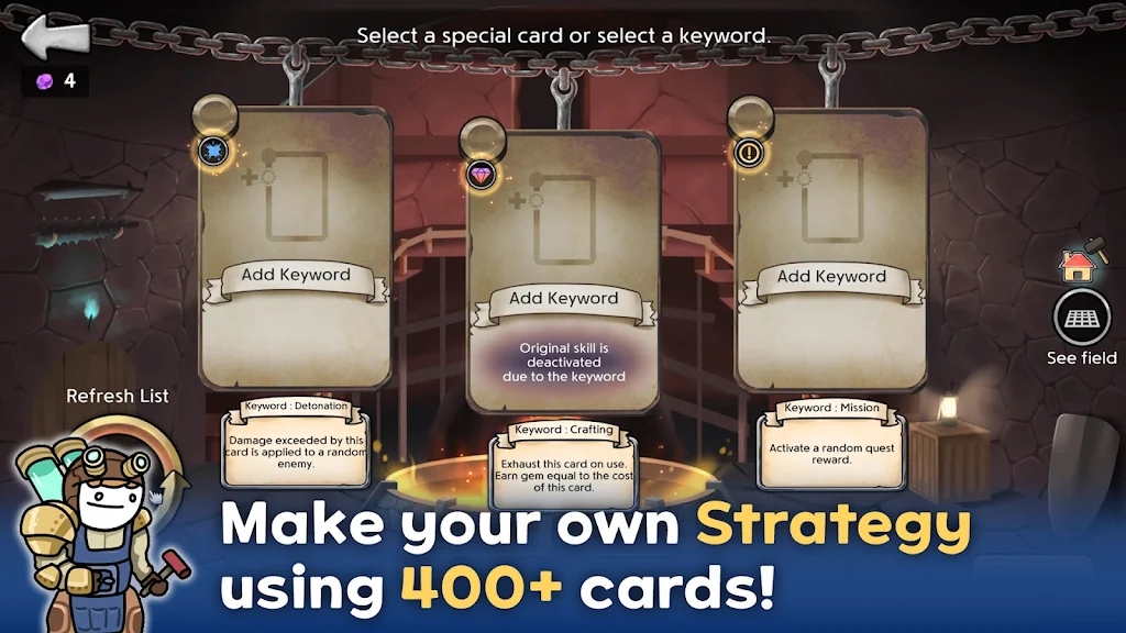 在一个以策略和运气为主导的世界里与敌人战斗,看看你的牌每次使用都会产生什么样的新的、令人兴奋的效果。