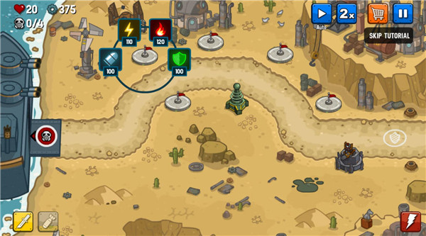 3、每关有正常模式和困难模式两种选择,如果你很自信是塔防游戏高手,那可以选择困难模式,如果是新手那还是从简单的开始吧