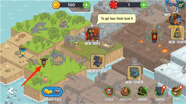 2、地图上有众多的关卡,越是到后面关卡的难度就越高,先从第一关开始