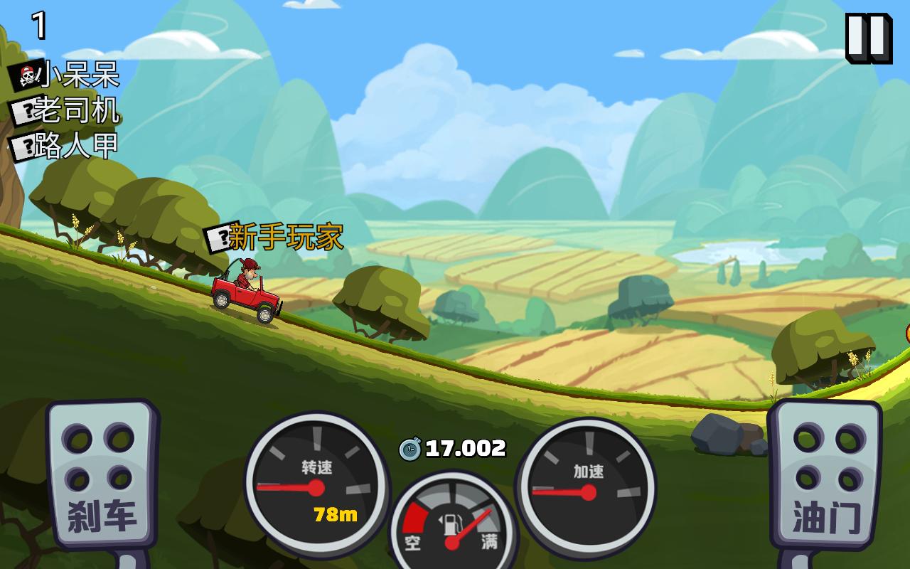 当下坡路段速度无法控制的时候,我们通过点击游戏来加速,而刹车就会很有用。