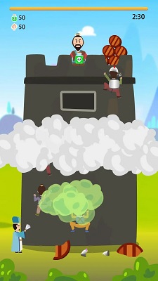 4、让跳跃的水桶从一个敌人的头上弹到另一个,最后击退他们。