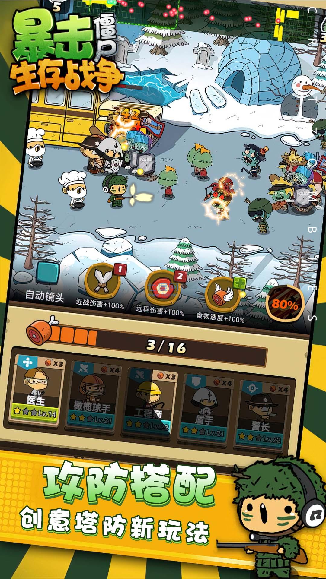 暴击僵尸生存战争游戏是一款非常好玩的策略塔防游戏,在游戏里面玩家随时都要做出合理的阵容搭配,不断的消灭敌人,同时也要保护好自己,游戏也有很多的任务,当任务完成,会获得奖励,可以用来提升自己的实力,喜欢的小伙伴们可以一起来玩哟。