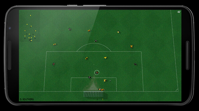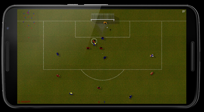 《自然足球》是一款简洁风的足球游戏,因此采用了上帝视角(俯视角),这样游戏就不用详细的显示每一个人物的模型,从而减少了游戏占用的手机内存。但是在游戏性上并没有减弱太多,人物的跑动争抢依旧非常的激烈,让人热血沸腾。
