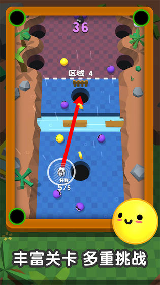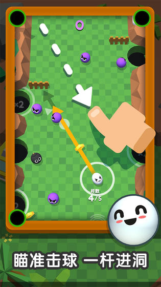 一杆进洞是一款类似桌球玩法的游戏,你会体验到精致的画面。