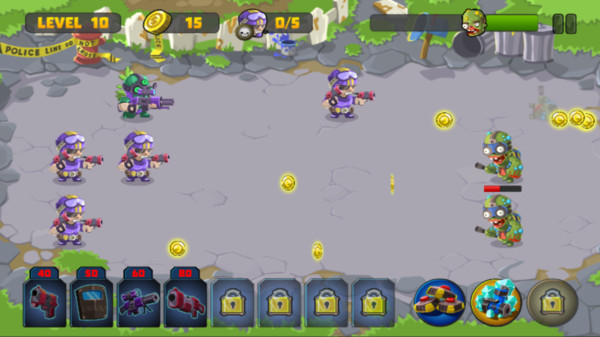 熊孩子大战僵尸手游版是一款很有意思的冒险益智类型的手机游戏,这款游戏的整体玩法不难玩家只需要不断的购买士兵去射击僵尸就可以了,很多样的任务等你去挑战,射杀僵尸之后会有很多的金币,记得领取,感兴趣的玩家快去下载游戏玩耍吧。