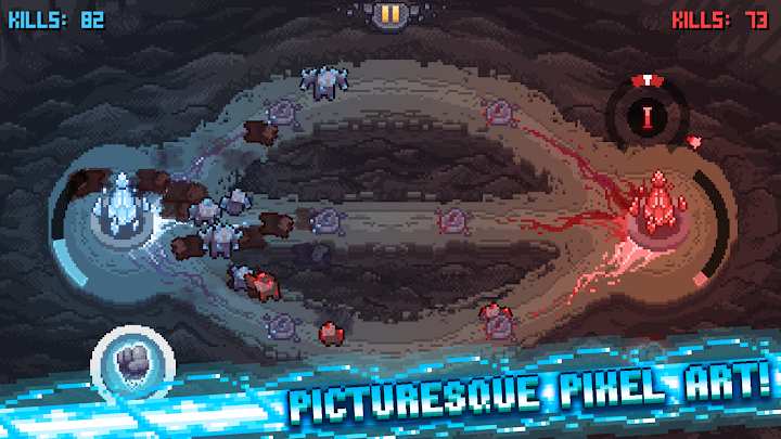 水晶怪物不应该达到所珍视的目标,只有一个巧妙的策略和战术将帮助你阻止他们!召唤不同级别的傀儡,尝试不同的战术。注意线路不要错过攻击,否则线路会丢失!你可以在pvp游戏模式下与人工智能或朋友一起玩。任何喜欢DOTA、像素游戏和RTS-Crystal Kill的人,都会有令人难忘的几个小时的精彩而激烈的游戏体验!