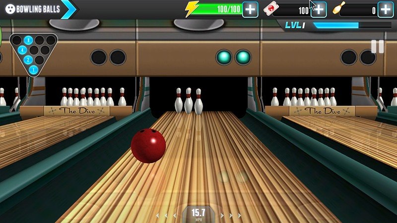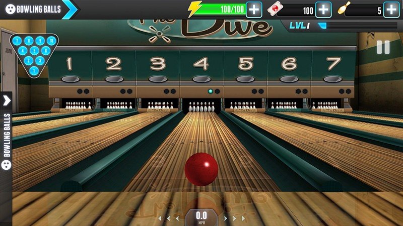 游戏玩法接近于现实中的保龄球,你可以选择球的种类,不同的球有着些许的差别。再进行力度,角度的调整,将保龄球滑出去。