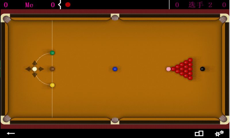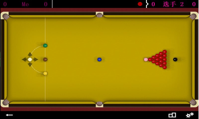 一款经典的斯诺克游戏,此项运动使用的球桌长约3569毫米、宽1778毫米,台面四角以及两长边中心位置各有一个球洞,使用的球分为1个白球,15个红球和6个彩球(黄、绿、咖啡、蓝、粉、黑)共22个球。击球顺序为一个红球、一个彩球,直到红球全部落袋,然后以黄、绿、咖啡、蓝、粉红、黑的顺序逐个击球,最后以得分高者为胜。斯诺克盛行于英国、爱尔兰、加拿大、澳大利亚和印度等英联邦国家以及香港,目前在中国发展很快。斯诺克(Snooker)的意思是“阻碍、障碍”,所以斯诺克台球有时也被称为障碍台球。