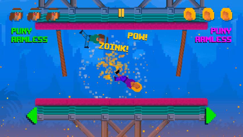 《翻滚摔角》是一款轻松搞笑的格斗摔跤游戏,游戏提供了多个架空在水面(岩浆)的比赛场地,所以不仅可以将对方打趴下,还可以直接将对方扔出场外,是一款简单粗暴的像素游戏。