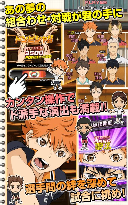 排球少年:掌上争锋是一款由动漫改编的排球手游,在游戏中,玩家可以组成自己喜欢的角色阵型,育成自己的队伍游戏里我们也能遇到熟悉的乌野高中、 青叶城西、音驹高中、伊达工业等高校的成员。