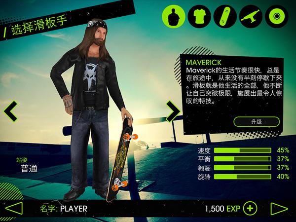 从 9 个角色中选择,并按你的偏好选择你最喜爱的装备完全自定义每一个角色。大量的滑板、支架和轮子,包含来自 Powell & Peralta、Bones、Golden Dragon 和 Tork Trux 的装备,让你挑花眼。