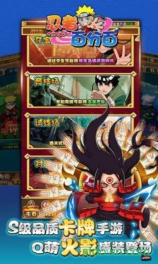 忍者百分百是一款汲取火影忍者精髓、颠覆传统卡牌游戏战斗体验的手游。集培养、强化、竞技、夺宝等流行元素融一体。战斗中高度还原火影忍者忍术,超S级忍术、禁术、瞳术、医疗忍术……流畅炫酷的忍术释放,绝对会让你流连忘返;忍刀七人众、佩恩六道、五代火影……点亮羁绊与主角一起担负起拯救忍界的重任!更有百款精心设计的火影忍者插画,《忍者百分百》绝对让你爱不释手!