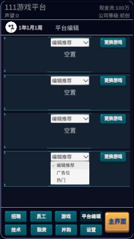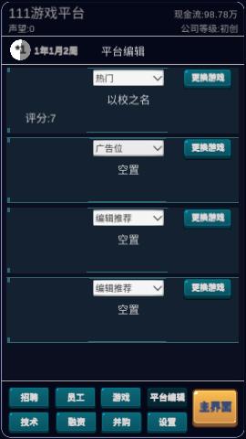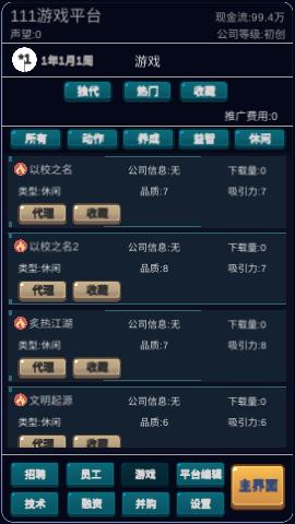 本款经营游戏平台是一款休闲模拟游戏,游戏画面全部文字流经营,玩家将经营一家网上的游戏平台,推荐各种游戏,精准推荐热门的,获得收益,扩大经营不开了,本款游戏真的做起来发现要做的贴合实际的话,数值等各方面有点复杂。