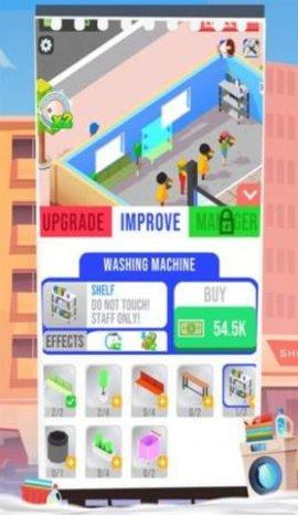本款游戏里面是一款2D的模拟经营类游戏,游戏开始时玩家会拥有自己的一个小小的洗衣店,玩家需要经营洗衣店创造收益,从而扩张洗衣店获得更多收益,升级洗衣店还可以解锁更多新的玩法。快为自己的洗衣店多拉一些回头客和新顾客吧。