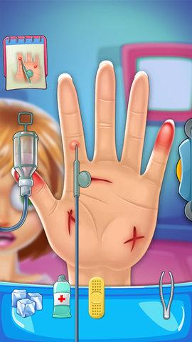 玩家在这款游戏中主要任务就是去治疗和修复受伤的手掌,游戏中的手受了很多伤,看起来非常疼,玩家要使用游戏中的工具来将这双手恢复如初,游戏非常好玩,玩家治疗这双手的过程也非常治愈。