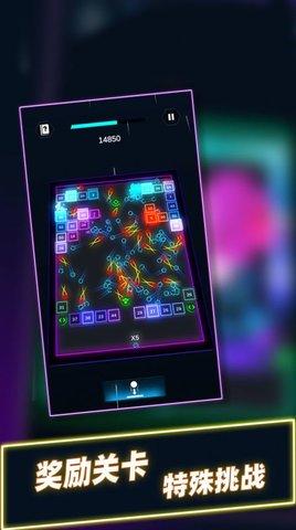 1、游戏是竖屏的界面,搭配炫酷的霓虹色彩,视听体验很不错,操作也很好上手的哦;