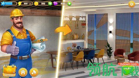 2、画面为卡通风格,增加了很多乐趣,玩法也比较简单。在游戏中,你是一名装修工人;
