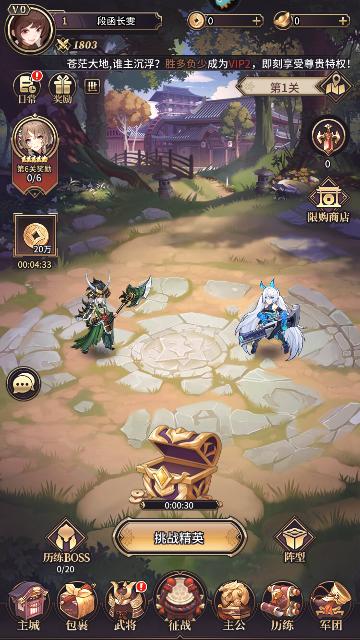 武将养成:游戏中每个武将都有自己的成长路线和进阶方式,你可以通过培养、升级、觉醒、转职等方式来提升他们的实力和技能。你还可以为他们装备专属武器和装备,让他们更加强大。