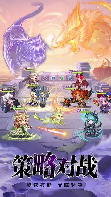 1、Q版的游戏画风,清新亮丽的场景画面,丰富多样的角色形象。