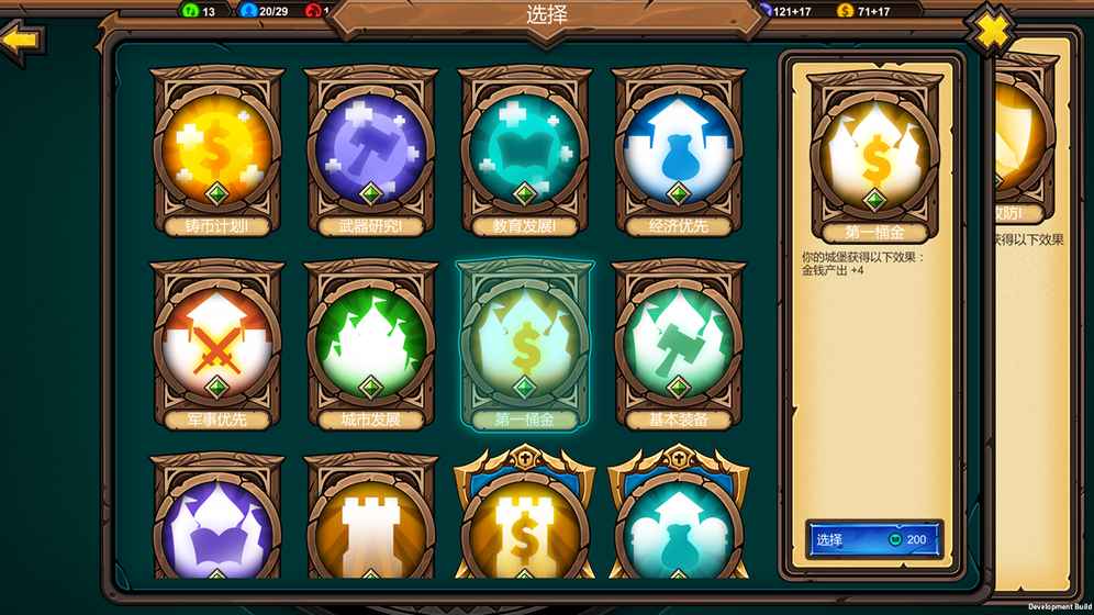 科技分成3部分,左半圆经济科技,可以提升经济产出,解锁经济科技的每一层的第一个科技会解锁城堡里可以建造的高级经济建筑。