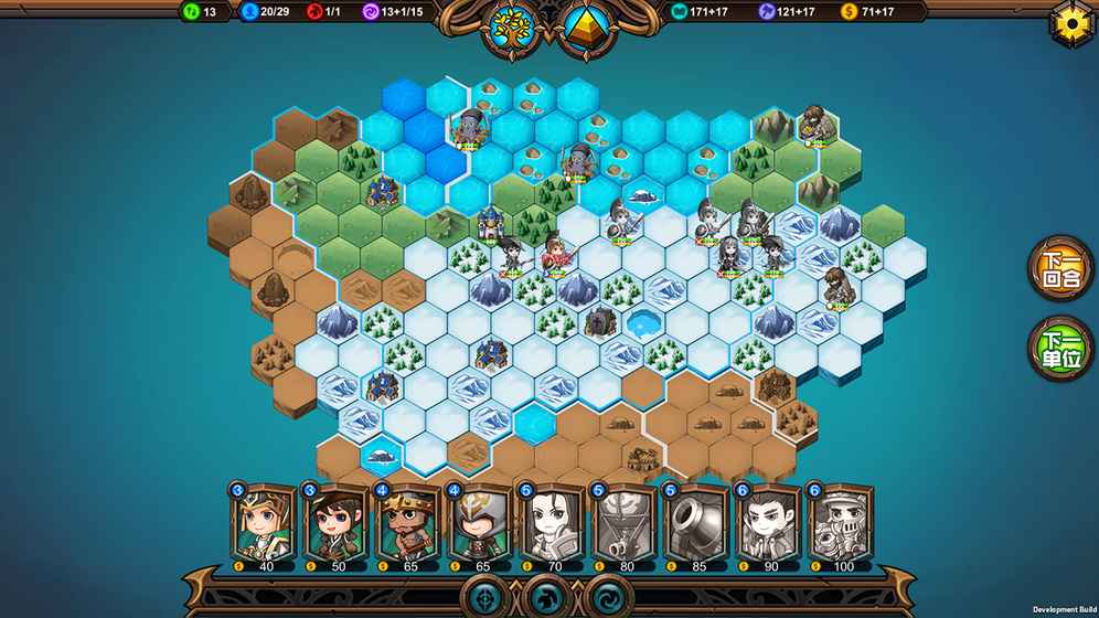 军团战棋:英雄时代是4X向的单机策略回合制的独立战棋游戏,游戏会是一次性付费买断制,无内购,不会做服务器,也没有PVP,我们2个人从2018年初开发到现在快半年了,现在游戏没有做的内容还有太多,先介绍一下现在有的功能。