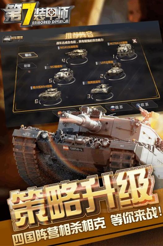 《第7装甲师》震撼来袭,它是一款反恐类的特战手游,有喜欢面高清真实,高度还原现代战争,逼真至极。四国阵营想杀相克,等你来战。赶快来这里建立超级装甲军团,探索史诗反恐剧情吧!