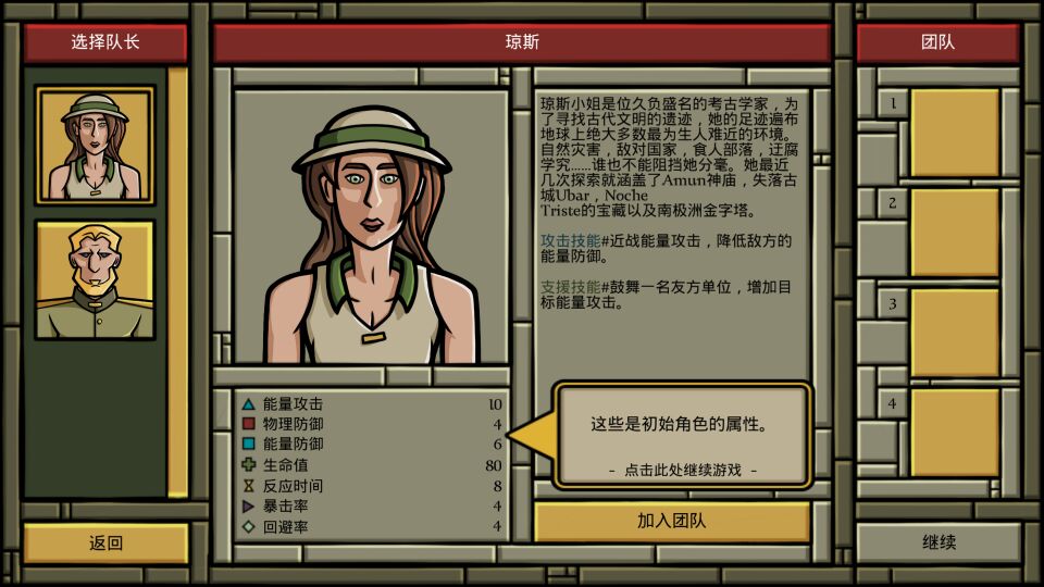 冒险开始招募自己的探险小组。这些勇敢的英雄来自世界各地,有着非常不同的历史和技能。每一个团队都必须有一个领导者和三个伙伴,导致大量的不同的组合,每个不同的战斗策略。