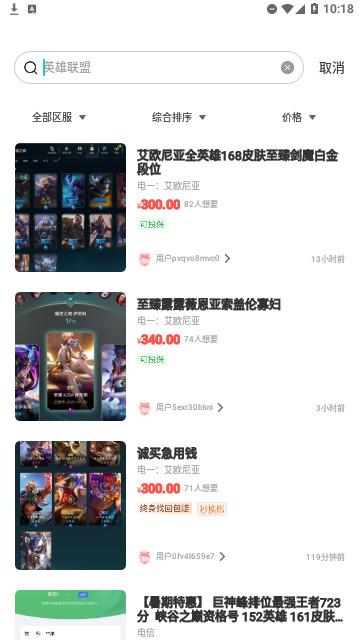 3、每一笔交易都是透明公开的,让您在本软件中以最低的价格买到一些您想要的游戏账号。