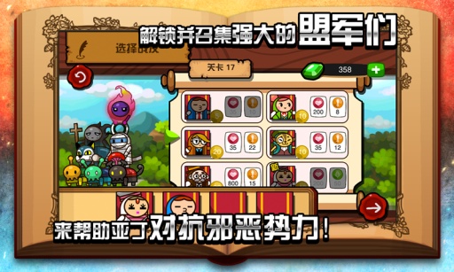 《魔龙与勇者》采用了卡通画风,每一个人物都是圆滚滚的。但不要因为这样就小看了这款游戏,这款游戏拥有丰富的角色,你可以想办法让那些强大的角色成为你的伙伴,与你一起对抗强大的魔龙,只要阵容组合得当,哪怕是天龙都不在话下。