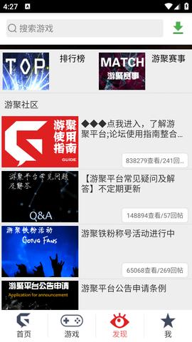 游聚游戏平台是一款包含了海量游戏的软件,里面不仅有游戏下载还有赛事直播可以观看,同时里面的游戏也是丰富多彩,不仅有街机游戏还有、MD游戏、FC游戏以及各种手游,非常适合喜欢玩游戏的用户,另外还有社区功能也十分实用,帮助用户进行流和分享。