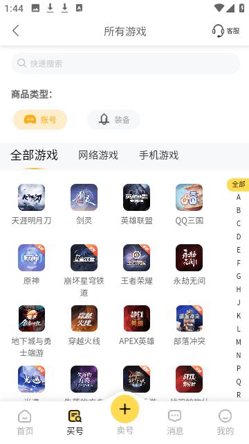 1、打开螃蟹账号代售app,在卖号界面中选择你要出售的类型