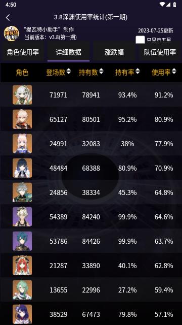 1、首先打开提瓦特小助手官方正版,在更多功能模块点击队伍使用率排行;