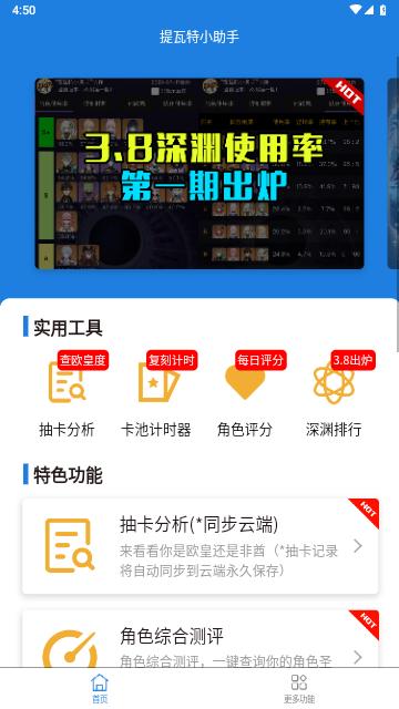 提瓦特小助手App是一款非常好用的游戏助手,各种服务在这里统统都有绝对能够让用户们体验最好的游戏服务,并且每日为用户们提供了多样化的奖励。并且支持抽卡和查询等功能设定。并且软件中没有广告打扰,需要的朋友们快来下载吧。