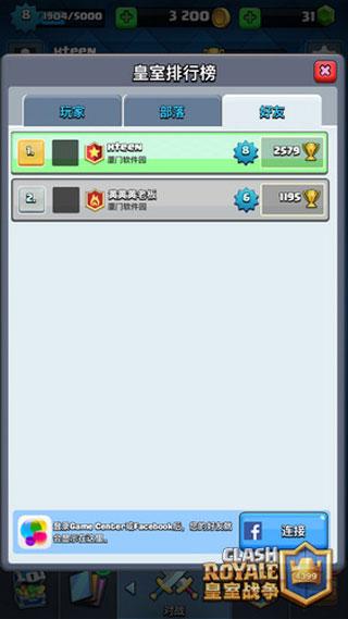 添加完好友后,你就可以在皇室战争“皇室排行榜”的“好友”一栏查看到好友的个人资料拉。