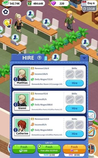 采访员工,雇用和管理更多员工以赚取游戏内现金!但有些员工在工作时间睡觉。
