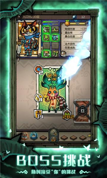 2、游戏中有各种关卡和挑战,玩家需要在游戏中探索、战斗和收集卡牌,提高自己的实力。