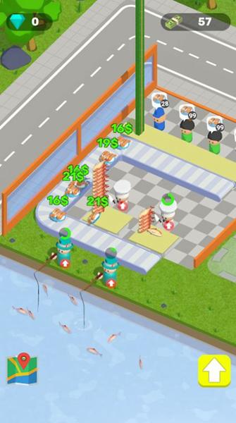 放置钓鱼3D是一款休闲放置经营类游戏,玩家将在游戏中通过钓鱼获取各种鱼类,并将其加工制作成为美食进行出售赚取金钱。扩展你的店铺,购买更多的设备和雇佣更多的人员,提升你的经营效率,打造你的商业帝国。