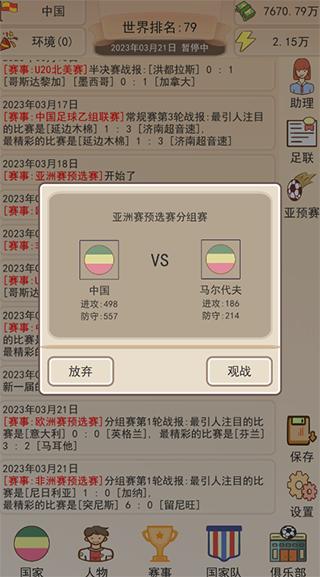 1、足协模拟器中通过提升自我球员的水平声望等,提高赢球的概率。