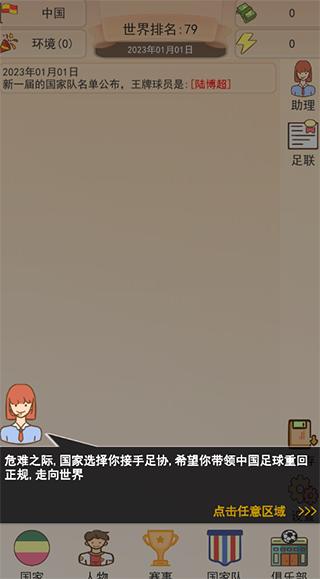 1、在【足协模拟器】游戏中,点击下方的【国家】菜单。