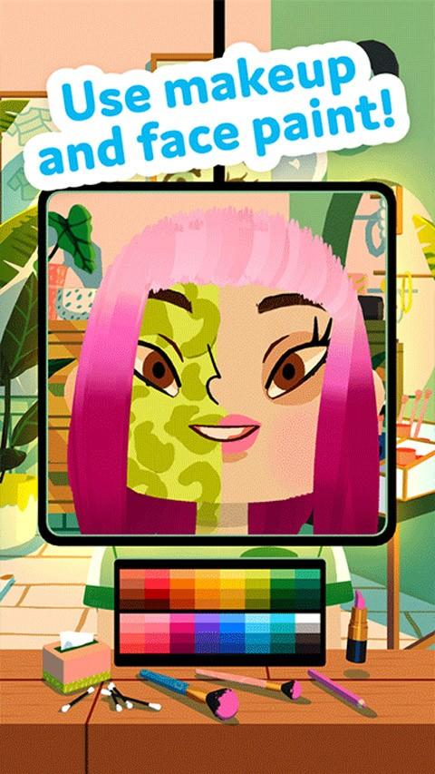 游戏玩法自由性很大的,我们随意的选择喜欢的进行试玩,游戏中的人物还会撒娇这个也是比较有趣的。 要化妆的话直接点击桌面上的道具,找到眼影盘就可以化妆了。