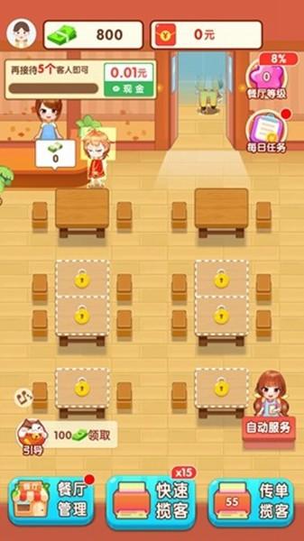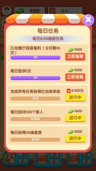 3.在游戏中,你可以获得完成任务和升级餐厅的红包,这很简单