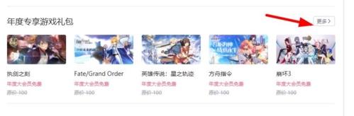 2.大会员界面往下拉,在年度专项游戏礼包那栏点击更多选项,然后找到大礼包即可。然后由于是有时间期限,并不是随时都会有礼包的,所以还是有点运气成分的。