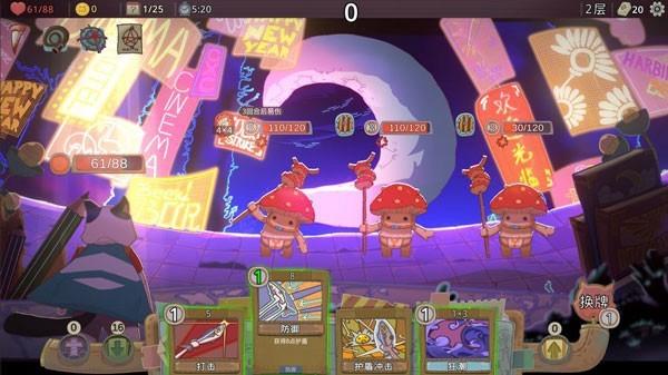 在游戏中,你操作动物主角使用卡牌战斗,获得胜利,拿取新的卡牌和拥有强大被动效果的遗物。